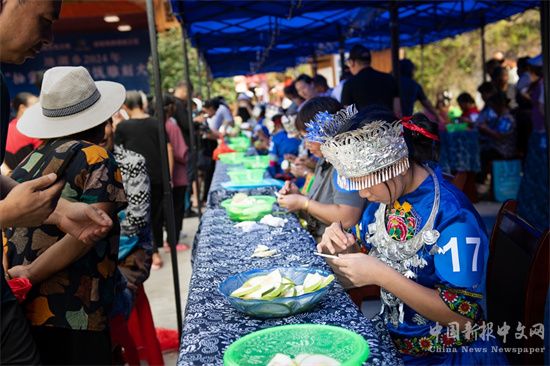 天柱縣地湖鄉(xiāng)”柚蜜姑娘“雕花蜜餞大賽現(xiàn)場。