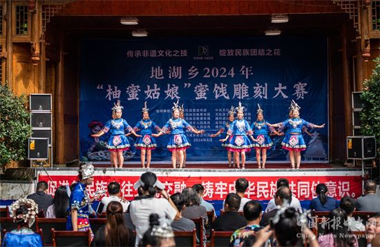 天柱縣地湖鄉(xiāng)”柚蜜姑娘“雕花蜜餞現(xiàn)場文藝展示。