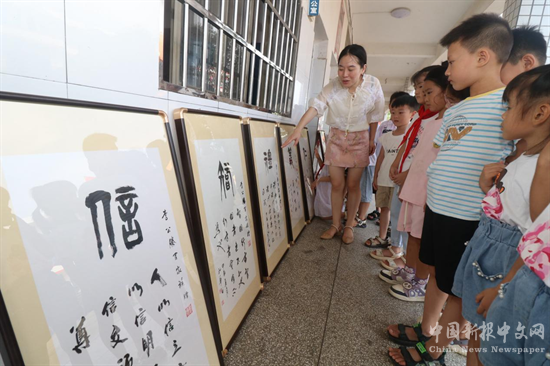 2024年9月6日,在湖南省漣源市橋頭河鎮(zhèn)歸盤園學校,孩子們在老師的帶領下欣賞書畫作品,增進學生美學認知,增強文化自信。
