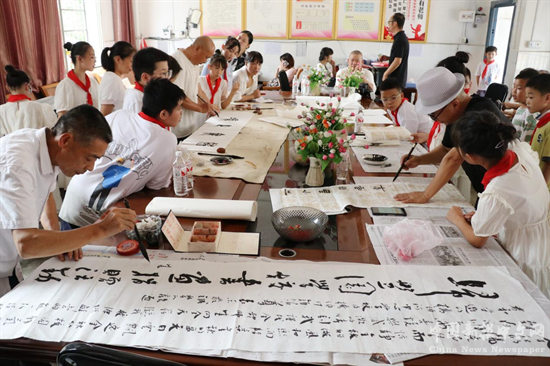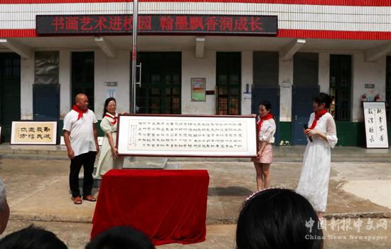 活動中,幾位書畫老師為學校的師生開設了一堂生動的現場書畫課。他們從基本筆畫到臨摹技巧、從書寫實踐到作品創(chuàng)編,用親切的語言、細致的講解,讓在場師生受益匪淺。同時,書畫家們還向學校贈送了129幅書畫作品。