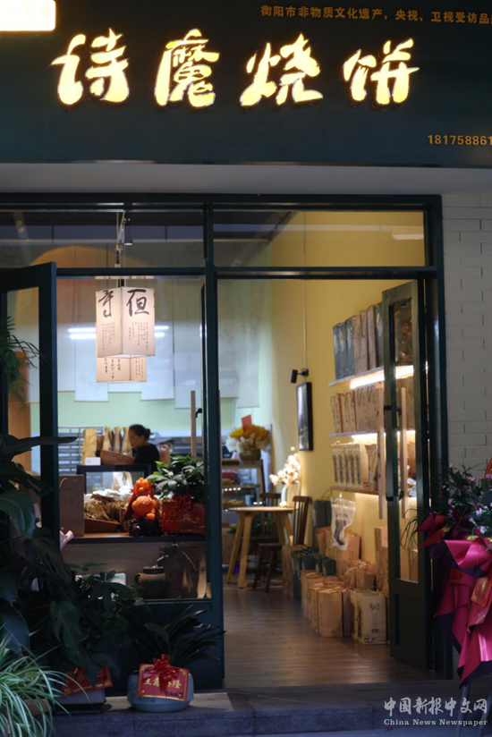 詩魔燒餅店不僅是一家燒餅鋪,更是一個集美食、文學、藝術于一體的文化空間。在這里,顧客可以一邊品嘗著酥脆可口的燒餅、月餅等衡陽美食,一邊沉浸在由詩歌、音樂、攝影、美術共同營造的詩意氛圍中??Х鹊南銡狻⒃姼璧拇己?、書法的古樸,共同構建了一個遠離塵囂的心靈桃花源,讓每一個踏入此地的靈魂都能找到詩意的棲居之所,每一塊精心制作的燒餅和月餅,都蘊含著對過往歲月的深深敬意;每一句流淌在舌尖的詩行,都是對未來美好生活的無限期許。詩魔燒餅將以衡陽南華里樂街為新的起點,開啟了一場以燒餅為舟、詩歌為帆的筑夢之旅。(通訊員 陽瓊 羅詩斌 攝影:辣椒老師)