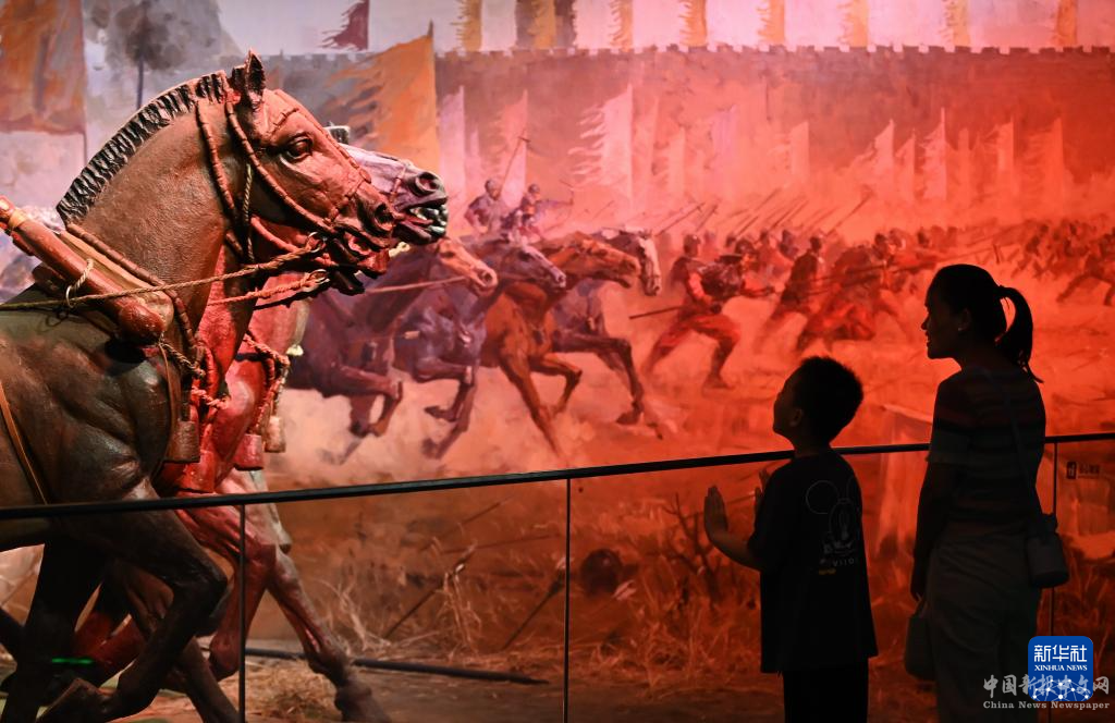 9月16日,家長和孩子在山東滕州博物館內(nèi)參觀。