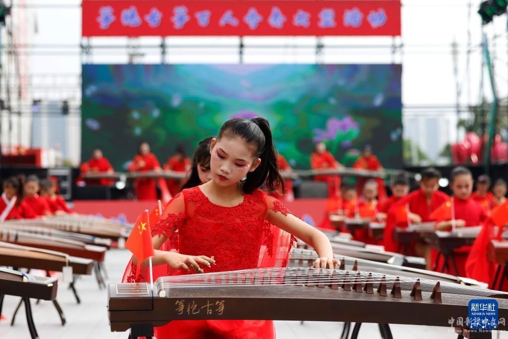 9月16日,小朋友們在江蘇省泗洪縣城區(qū)彈奏古箏。
