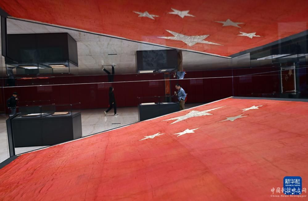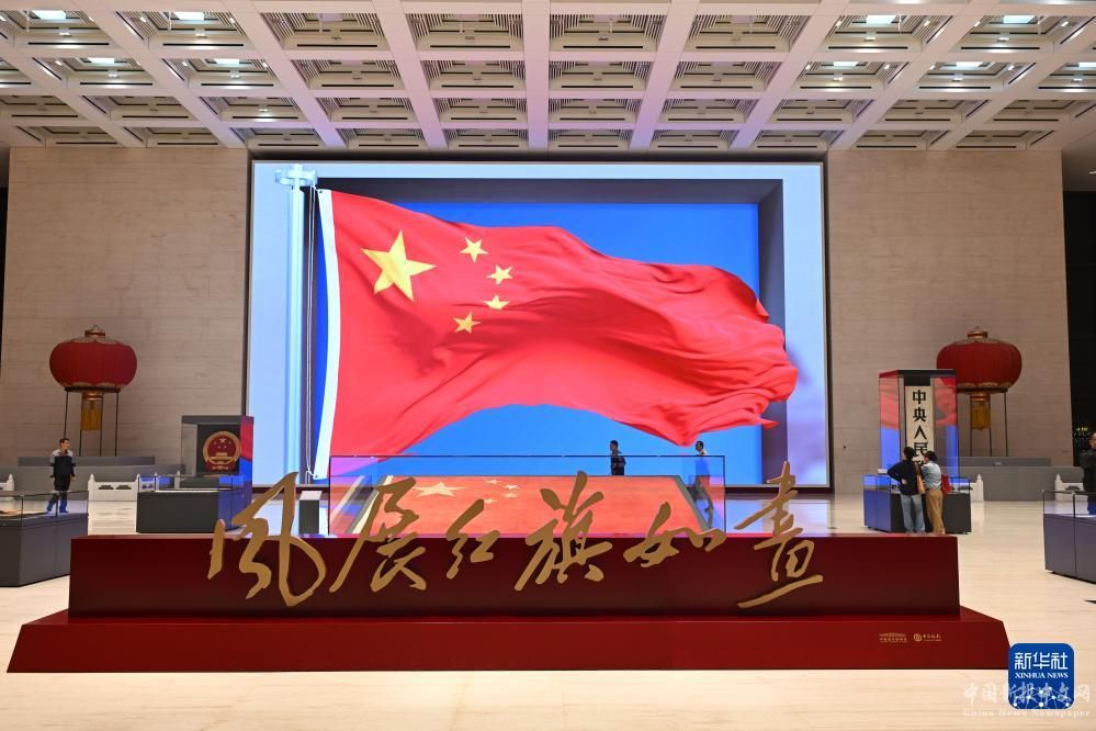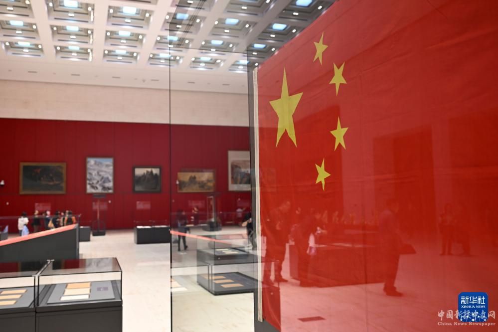 當(dāng)日,中國國家博物館依托館藏原創(chuàng)策劃的“風(fēng)展紅旗如畫——館藏紅色經(jīng)典文物展”在北京開幕。展覽系統(tǒng)展示中國國家博物館館藏革命年代的紅旗、新中國成立后的五星紅旗和黨旗、革命題材經(jīng)典美術(shù)作品等紅色文物60余件,以及100張新時代以國旗為主題的高清照片,并首次輔以裸眼3D動態(tài)展示國旗,展現(xiàn)五星紅旗的誕生過程和新時代國旗飄揚在祖國大好河山的壯美場景。