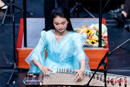 在這場音樂會(huì)上,眾多藝術(shù)家們傾情演繹了多首經(jīng)典作品。其中,青年古箏演奏家吳邦銀的古箏獨(dú)奏《高山流水》引現(xiàn)場觀眾流連忘返。