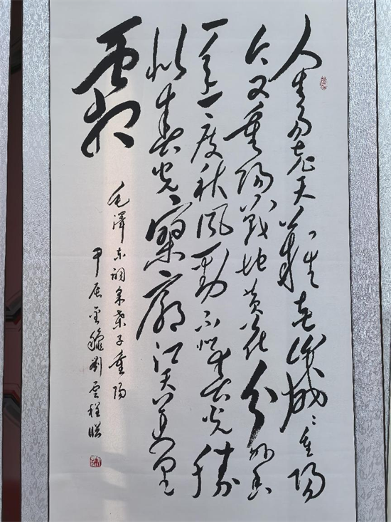 在參觀展覽和書畫贈送環(huán)節(jié),詩書畫社成員詳細解說了本次參展作品的創(chuàng)作背景、創(chuàng)作過程和深刻內(nèi)涵,并在現(xiàn)場即興揮毫潑墨,吸引眾多書畫愛好者和遠近群眾前來享受書畫藝術(shù)的創(chuàng)作過程。