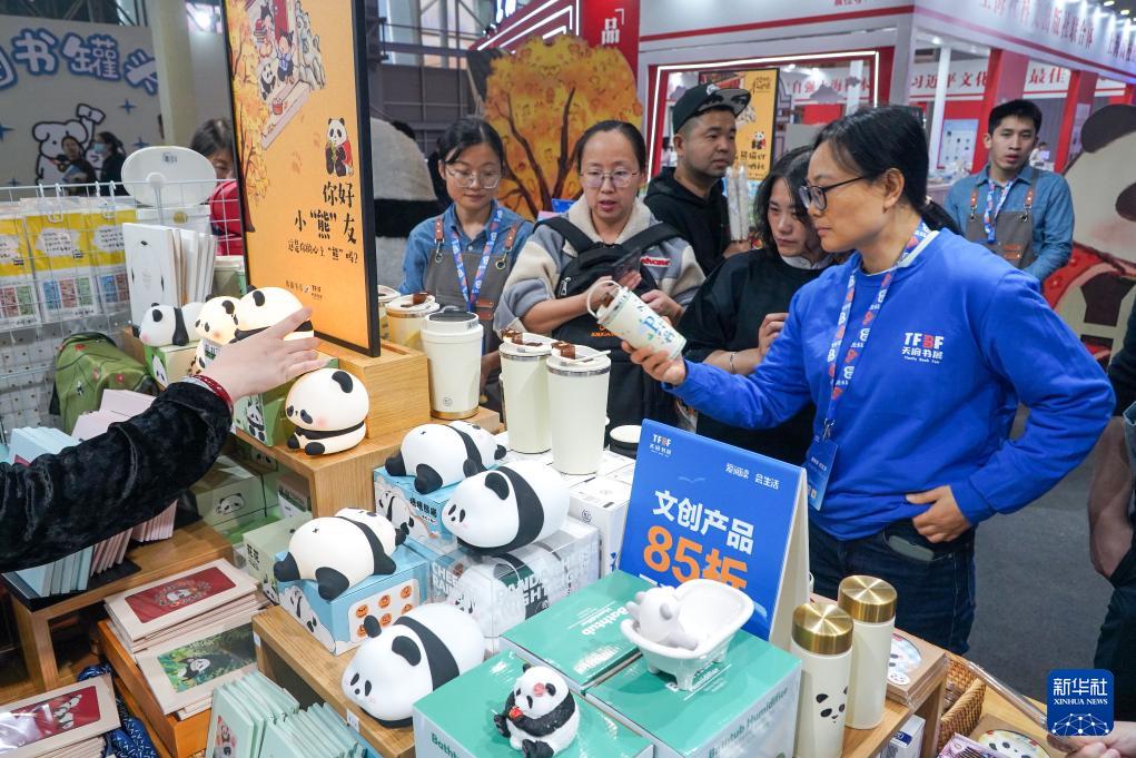 10月11日,讀者在2024天府書展現(xiàn)場(chǎng)選購(gòu)文創(chuàng)產(chǎn)品。