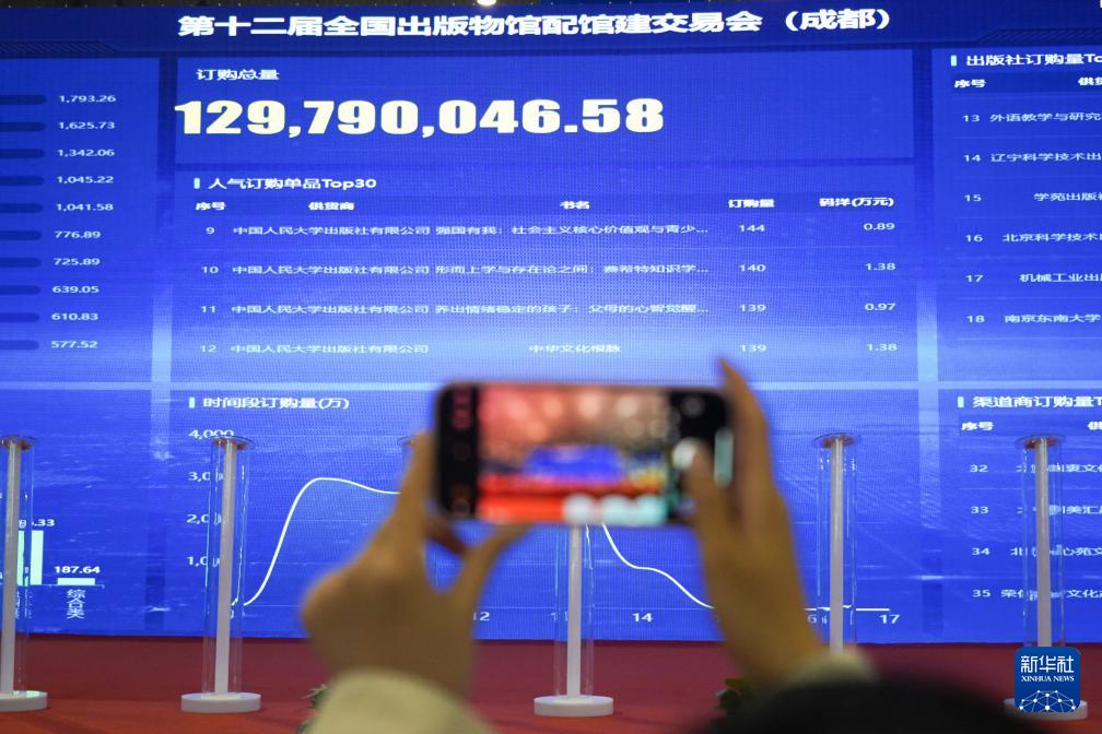 10月11日,參展商在全國(guó)出版物館配館建交易會(huì)現(xiàn)場(chǎng)拍攝實(shí)時(shí)交易數(shù)據(jù)。