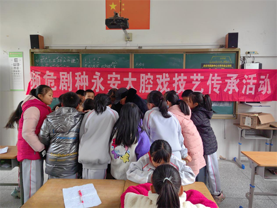 戲曲是我國傳統(tǒng)文化的瑰寶,承載著豐富的地域文化和民族精神。“近年來,我校積極配合鄉(xiāng)政府實(shí)施的‘戲曲進(jìn)校園常態(tài)化教學(xué)工程’,以課堂為陣地,以校園為舞臺(tái),創(chuàng)新推進(jìn)戲曲進(jìn)校園文明實(shí)踐活動(dòng),讓學(xué)生們近距離領(lǐng)略非遺文化獨(dú)特魅力的同時(shí),進(jìn)一步增強(qiáng)了對非遺文化的認(rèn)同感、歸屬感和自豪感。”永安市民族中心小學(xué)校長顏亮亮說。