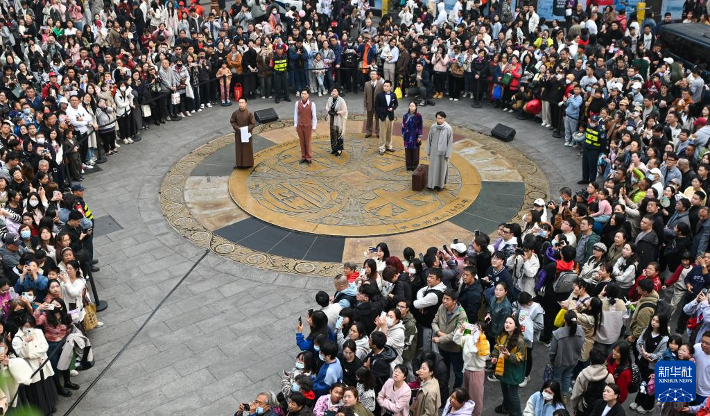 當(dāng)日,曹禺名劇《日出》在其故事背景地——惠中飯店,現(xiàn)天津金街步行街大銅錢廣場(chǎng)進(jìn)行首場(chǎng)常態(tài)化演出。天津北方演藝集團(tuán)、天津人民藝術(shù)劇院將于每周六和節(jié)假日(極端天氣除外)的下午2:30在這里為市民游客帶來《日出》等經(jīng)典話劇的街頭演出,帶領(lǐng)觀眾沉浸式感受天津城市文化魅力。