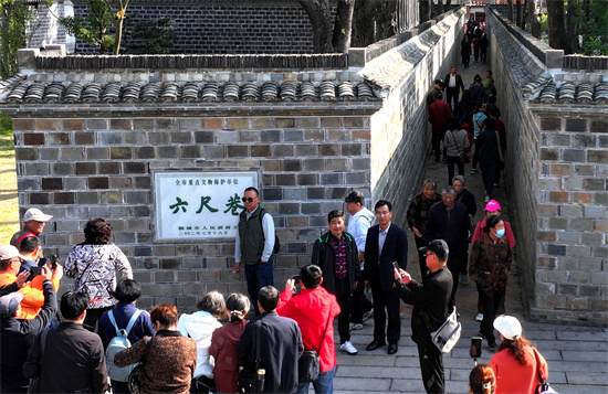 2024年11月5日,安徽省安慶市桐城市六尺巷,人頭攢動(dòng),游人不絕。本地市民和外地游客紛紛沿著總書(shū)記的足跡,走一走百米小巷,感受文都桐城的悠長(zhǎng)文脈,摸一摸兩側(cè)磚墻,重溫傳統(tǒng)文化的禮讓之風(fēng),念一念“讓墻詩(shī)”,更加深刻領(lǐng)悟六尺巷的“窄”與“寬”。 (巢志斌 攝)