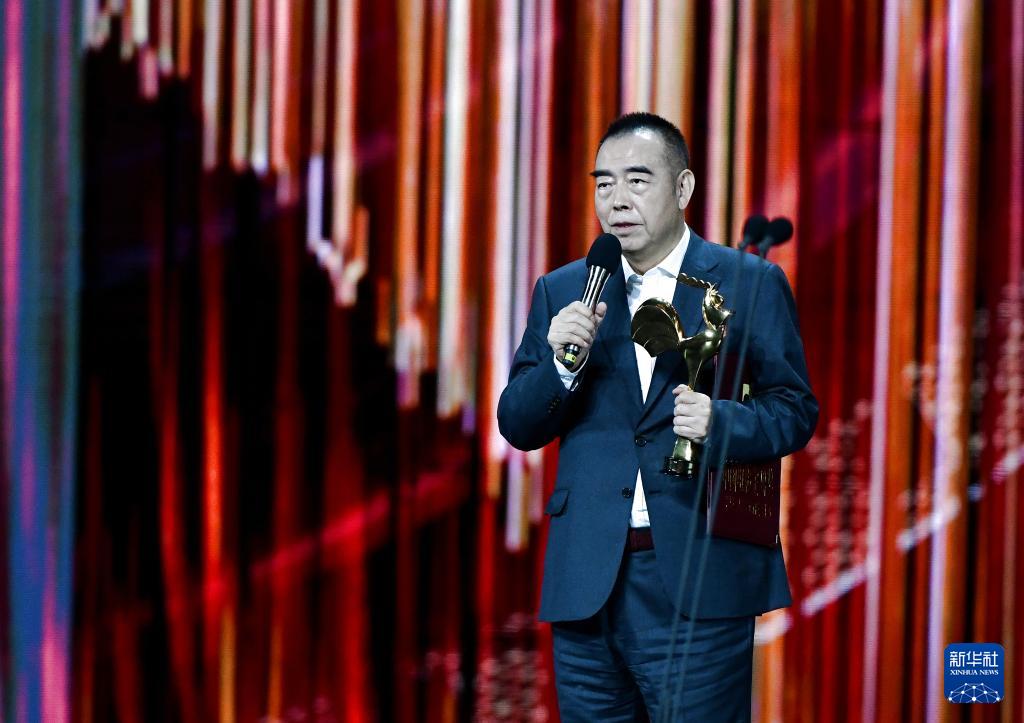 11月16日,陳凱歌在臺(tái)上領(lǐng)獎(jiǎng)致辭。陳凱歌憑借《志愿軍:雄兵出擊》獲最佳導(dǎo)演獎(jiǎng)。