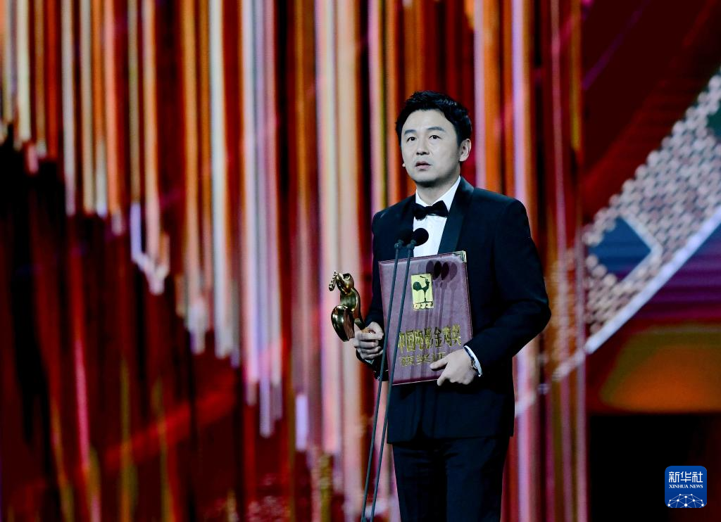 11月16日,王驍在臺(tái)上領(lǐng)獎(jiǎng)。王驍憑借《三大隊(duì)》獲得最佳男配角獎(jiǎng)。