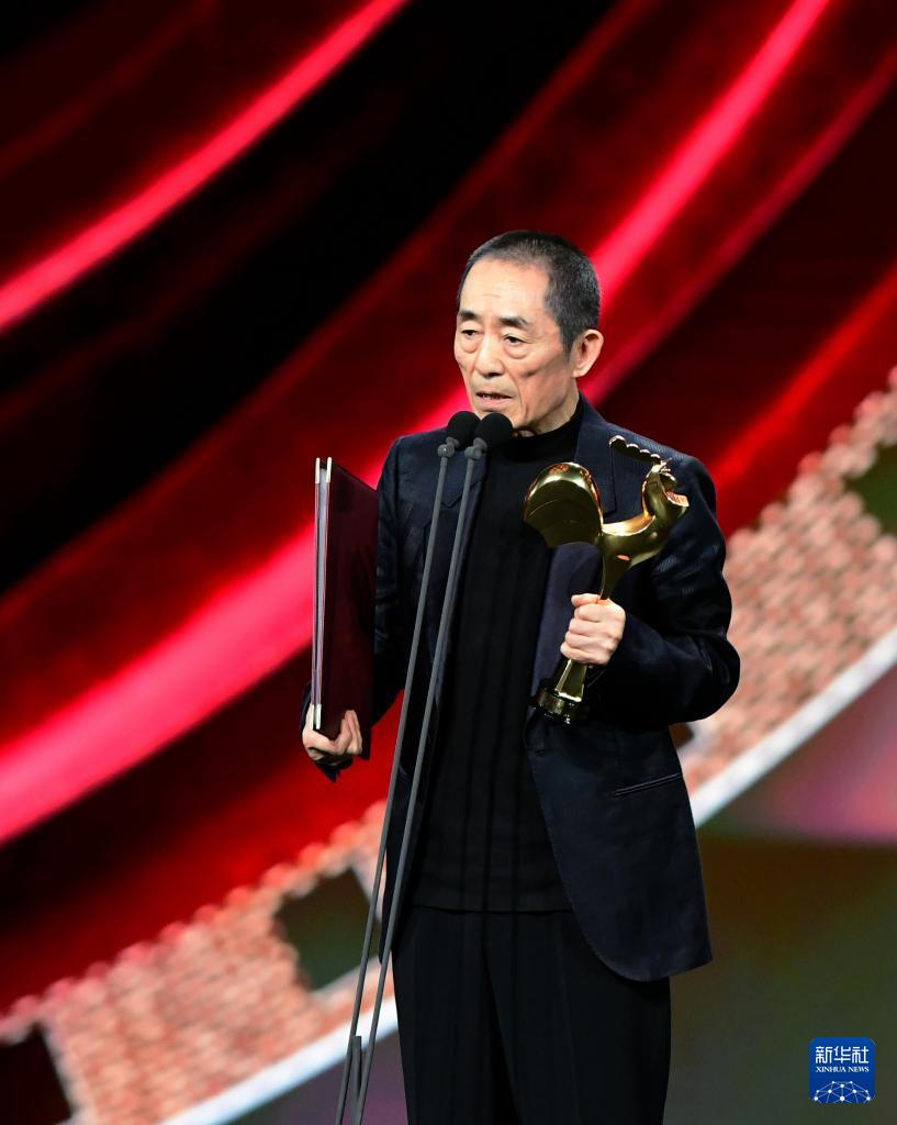 11月16日,《第二十條》導(dǎo)演張藝謀在臺(tái)上領(lǐng)獎(jiǎng)致辭。