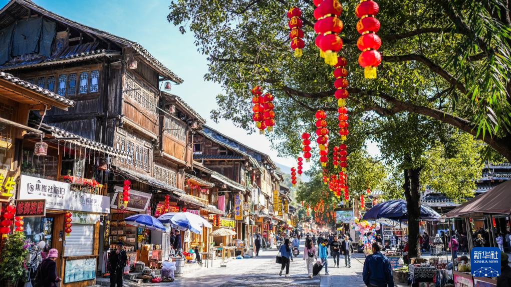 11月29日,黎平縣肇興侗寨內(nèi)掛起了印有“中國侗年”字樣的紅燈籠。