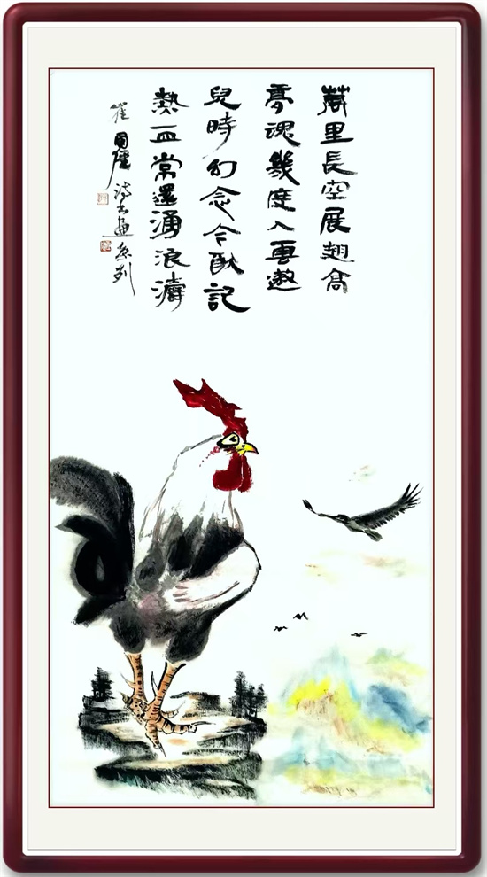 在當(dāng)代諸多畫(huà)雞名家中,我結(jié)識(shí)了一位獨(dú)特的畫(huà)雞人——崔國(guó)強(qiáng),他現(xiàn)任湖南省硬筆書(shū)法家協(xié)會(huì)主席。其書(shū)畫(huà)室內(nèi),桌上墻頭,皆是雞的身影,雞飛鳳舞,堪稱“養(yǎng)雞專業(yè)戶”。我曾心生疑惑,為何他畫(huà)的幾乎都是雞?崔主席答道:“人的精力終歸有限,我并非美術(shù)專業(yè)出身,純粹出于愛(ài)好,能將一樣畫(huà)好便已足矣。”他還以詩(shī)言志:
