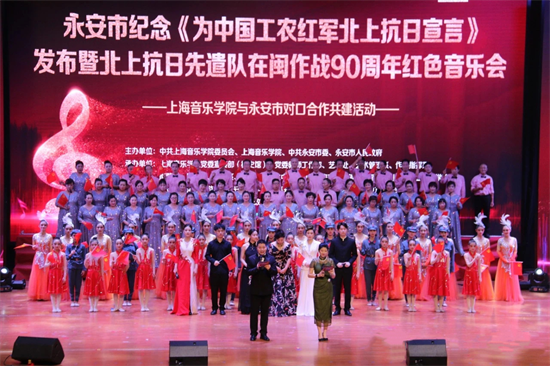 1934年7月15日,《為中國(guó)工農(nóng)紅軍北上抗日宣言》等四個(gè)宣言書(shū)在永安小陶發(fā)布,紅軍北上抗日先遣隊(duì)成為中央紅軍主力開(kāi)展第五次反“圍剿”、實(shí)行戰(zhàn)略轉(zhuǎn)移開(kāi)啟長(zhǎng)征的策應(yīng)力量。永安市巧借今年“宣言”發(fā)布90周年之機(jī),與上海音樂(lè)學(xué)院聯(lián)合舉辦紀(jì)念《為中國(guó)工農(nóng)紅軍北上抗日宣言》發(fā)布暨北上抗日先遣隊(duì)在閩作戰(zhàn)90周年紅色音樂(lè)會(huì),用“燃燒的音符”律動(dòng)再次唱響了時(shí)代最強(qiáng)音。