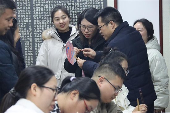 調(diào)研組現(xiàn)場觀看了舞蹈、美術(shù)、書法、古箏、攝影、戲劇等門類的現(xiàn)場教學(xué),親自體驗了傳統(tǒng)漆扇的制作,與學(xué)員和老師進(jìn)行了親切的交流。對我館青年夜校開辦過程進(jìn)行了深入了解,對工作過程中是否存在困難和其他問題進(jìn)行了交流,并介紹了北京、江浙等地區(qū)的相關(guān)做法和經(jīng)驗。