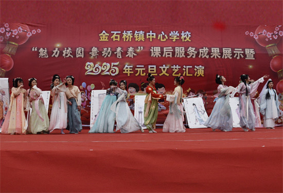 中國新報(bào)湖南訊(通訊員 陳甫春)為展現(xiàn)師生個(gè)性風(fēng)彩,檢閱全鎮(zhèn)中小學(xué)課后服務(wù)成果,豐富師生的課余生活,12月26日下午,隆回縣金石橋鎮(zhèn)中心學(xué)校組織舉行了以“魅力校園 舞動(dòng)青春”為主題的元旦文藝匯演暨課后服務(wù)成果展示活動(dòng)。