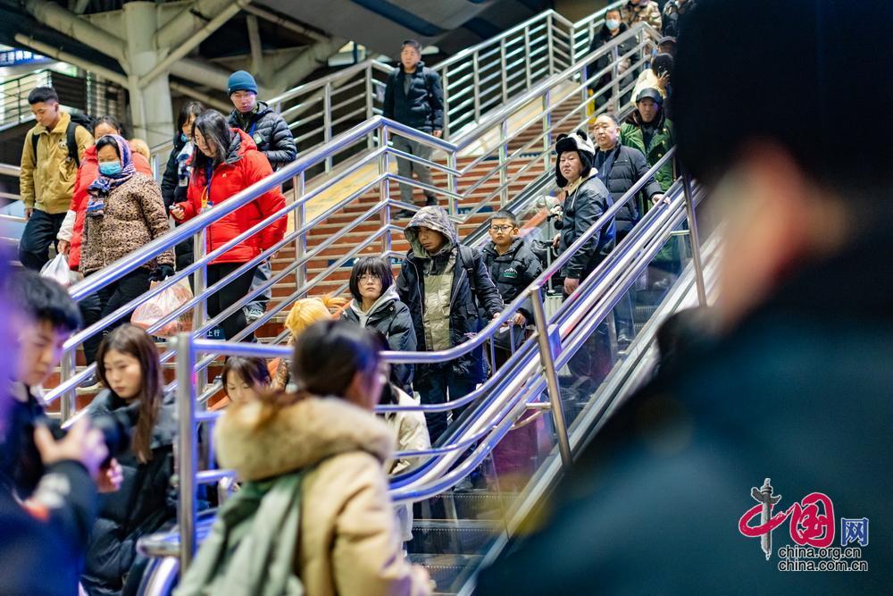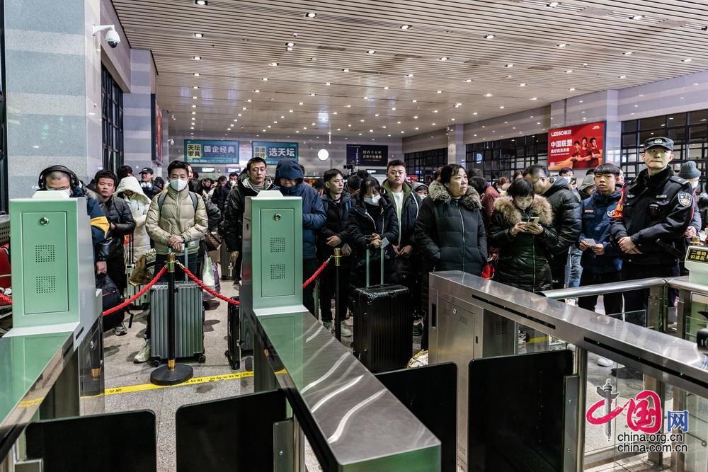 乘坐春運首日北京地區(qū)首趟普速列車K5207次的乘客有序進站。中國網記者 鄭亮攝