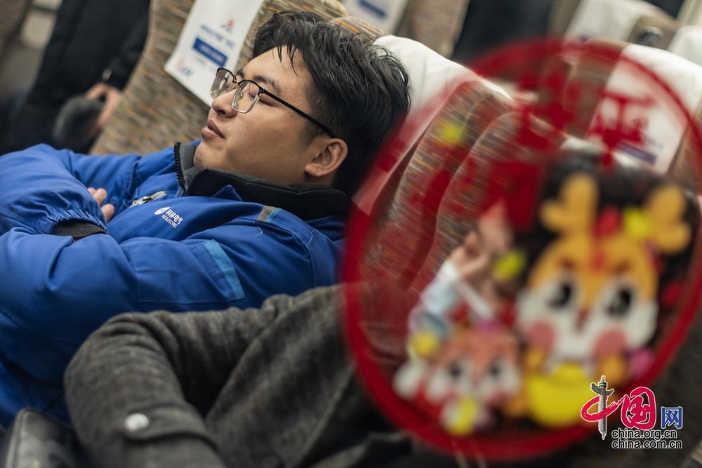 2024年1月26日,乘坐春運首日北京地區(qū)首趟高鐵列車G6701次的乘客在車上休息。中國網記者 鄭亮攝