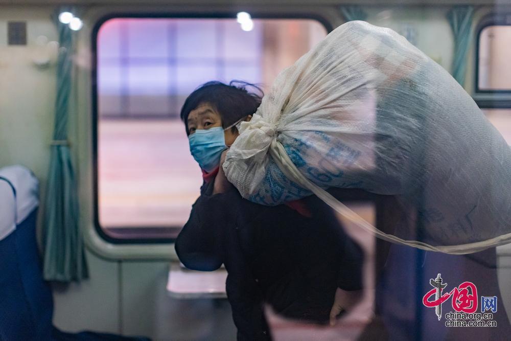 乘坐春運首日北京地區(qū)首趟普速列車K5207次的乘客。中國網記者 鄭亮攝
