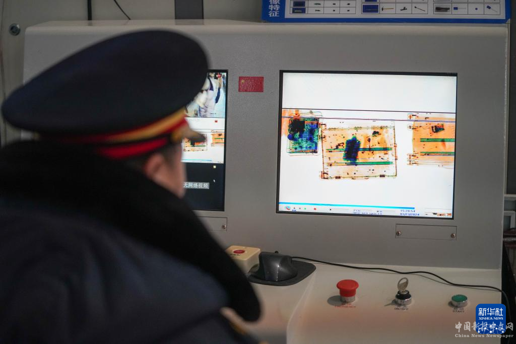 1月23日,在撫遠(yuǎn)站,鐵路工作人員對(duì)進(jìn)站旅客攜帶行李進(jìn)行安全檢查。
