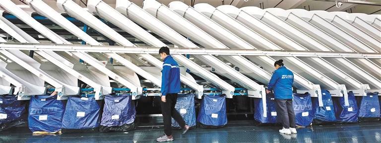 員工在中通快遞魯南快遞分撥中心智能分揀流水線上忙碌。目前,臨沂市擁有快遞企業(yè)90余家,分支機構800余家。