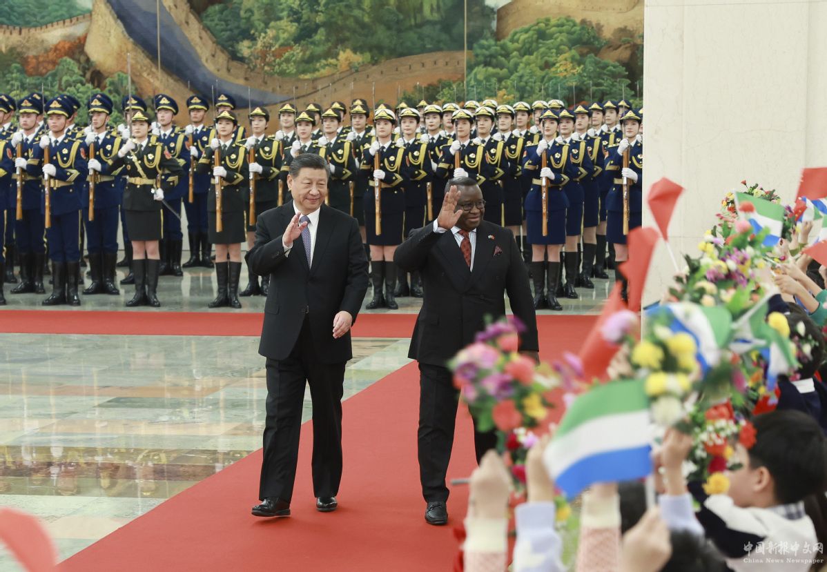 2月28日下午,國(guó)家主席習(xí)近平在人民大會(huì)堂同來(lái)華進(jìn)行國(guó)事訪問(wèn)的塞拉利昂總統(tǒng)比奧舉行會(huì)談。
