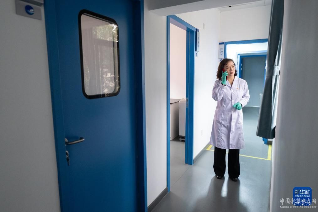 王瓊在武漢宗關(guān)水廠化驗(yàn)室打電話聯(lián)絡(luò)工作(2月20日攝)。