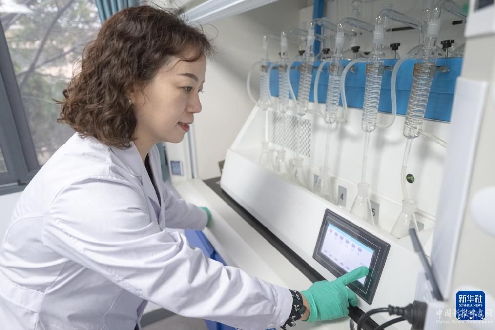 王瓊在武漢宗關(guān)水廠化驗(yàn)室進(jìn)行原水水質(zhì)檢驗(yàn)工作(2月20日攝)。