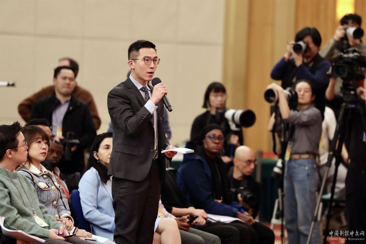 3月6日,記者在提問(wèn)。中國(guó)日?qǐng)?bào)記者 張威 攝