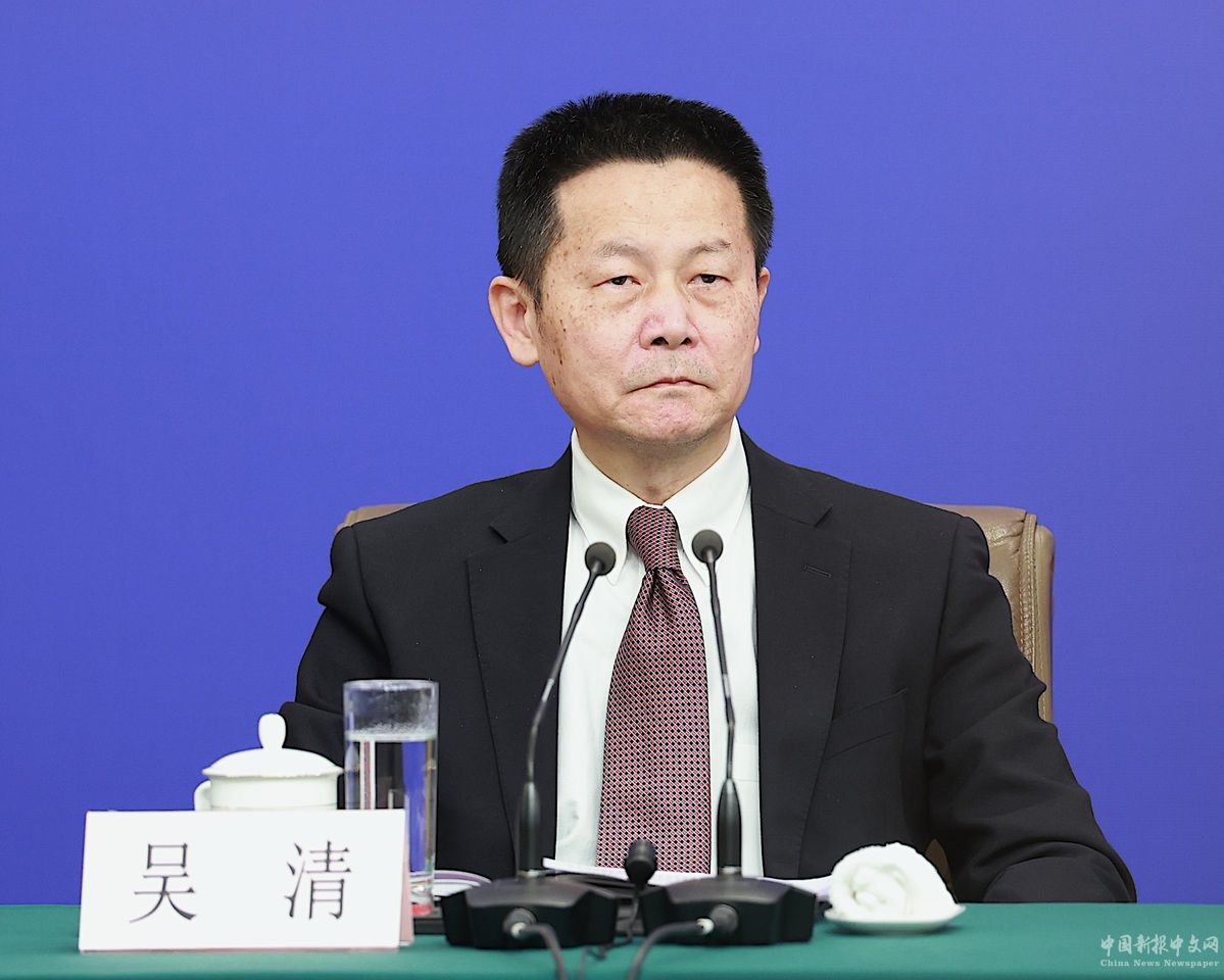 3月6日,中國(guó)證券監(jiān)督管理委員會(huì)主席吳清在記者會(huì)上。中國(guó)日?qǐng)?bào)記者 馮永斌 攝