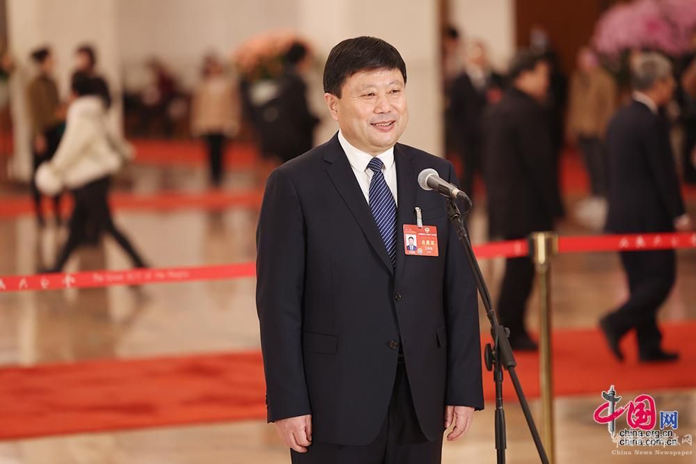 全國(guó)政協(xié)委員、中國(guó)黃金集團(tuán)公司黨委書(shū)記、董事長(zhǎng)盧進(jìn)。中國(guó)網(wǎng) 董寧 攝影