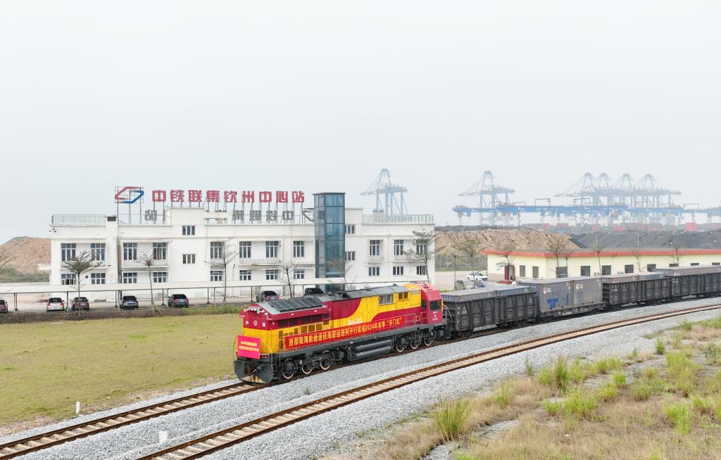 3月17日上午,一列滿載緬甸黑芝麻、海南椰子汁、廣西白糖等貨物的海鐵聯(lián)運班列,從欽州鐵路集裝箱中心站緩緩發(fā)出駛向四川城廂站。這是2024年西部陸海新通道開行的第2000列海鐵聯(lián)運班列,同比增長16.8%,提前14天完成一季度班列開行任務(wù)。