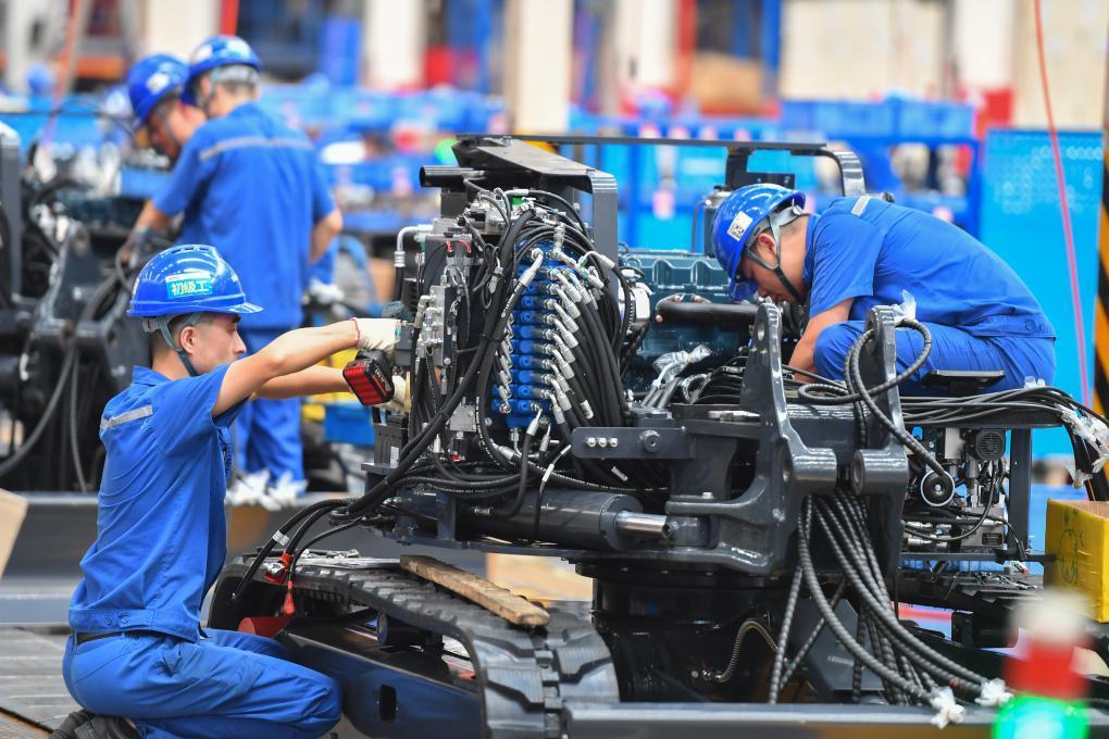 在位于湖南長沙經(jīng)開區(qū)的山河智能裝備股份有限公司,工作人員在組裝機械裝備。新華社記者 陳澤國 攝