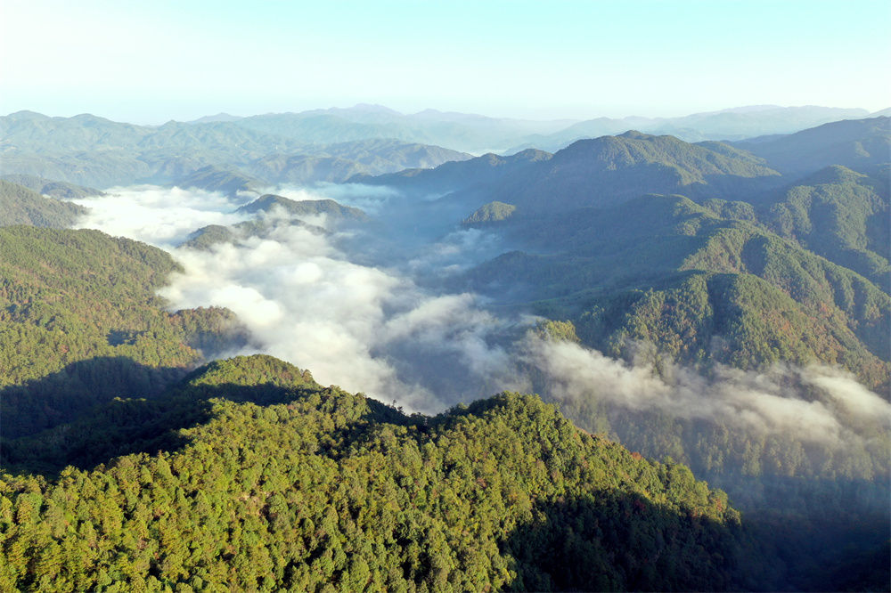 這是在福建省連城縣莒溪鎮(zhèn)太平僚村拍攝的梅花山自然保護區(qū)森林景觀(2020年11月5日攝,無人機照片)。新華社記者 彭張青 攝