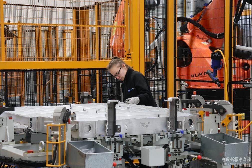 2月23日,在法國呂茨,中國敏實(shí)集團(tuán)與法國雷諾集團(tuán)成立的合資公司的員工在電池盒產(chǎn)線上工作。新華社記者張百慧攝