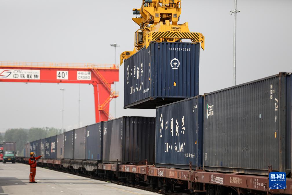 4月11日,在國(guó)鐵集團(tuán)鄭州局圃田站,首趟中老鐵路(鄭州—萬(wàn)象)國(guó)際貨運(yùn)列車(chē)在做發(fā)車(chē)前準(zhǔn)備。