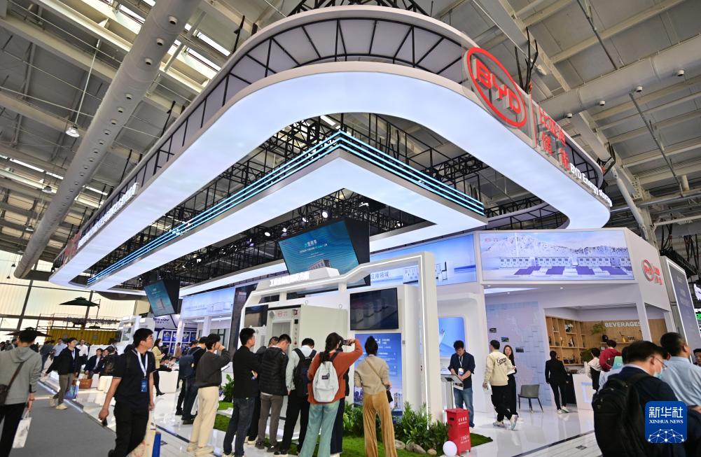 4月11日,觀眾在第十二屆儲(chǔ)能國(guó)際峰會(huì)暨展覽會(huì)比亞迪展位參觀。