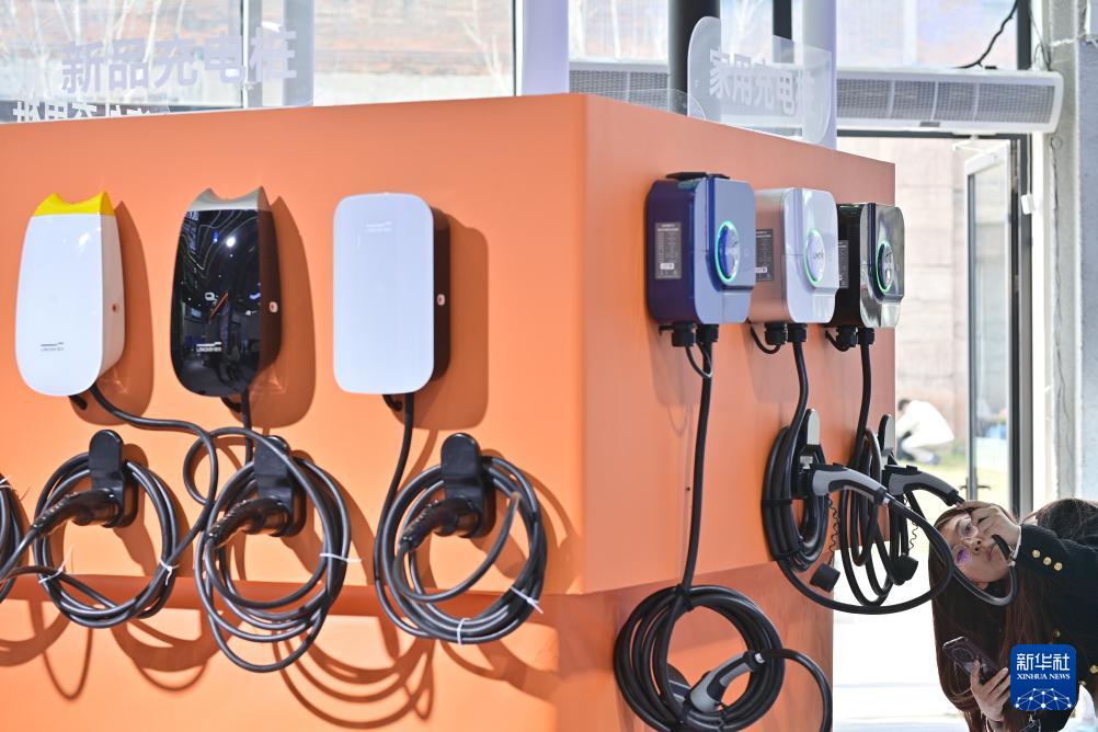 4月11日,參觀者在第十二屆儲(chǔ)能國(guó)際峰會(huì)暨展覽會(huì)上了解新能源車充電樁產(chǎn)品。