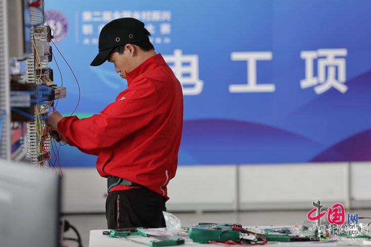 第二屆全國鄉(xiāng)村振興職業(yè)技能大賽電工項目比賽現(xiàn)場。中國網(wǎng)記者 董寧 攝影