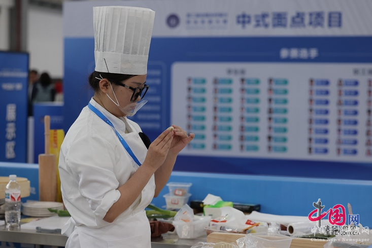 第二屆全國鄉(xiāng)村振興職業(yè)技能大賽“中式面點(diǎn)”賽項現(xiàn)場。中國網(wǎng)記者 董寧 攝影