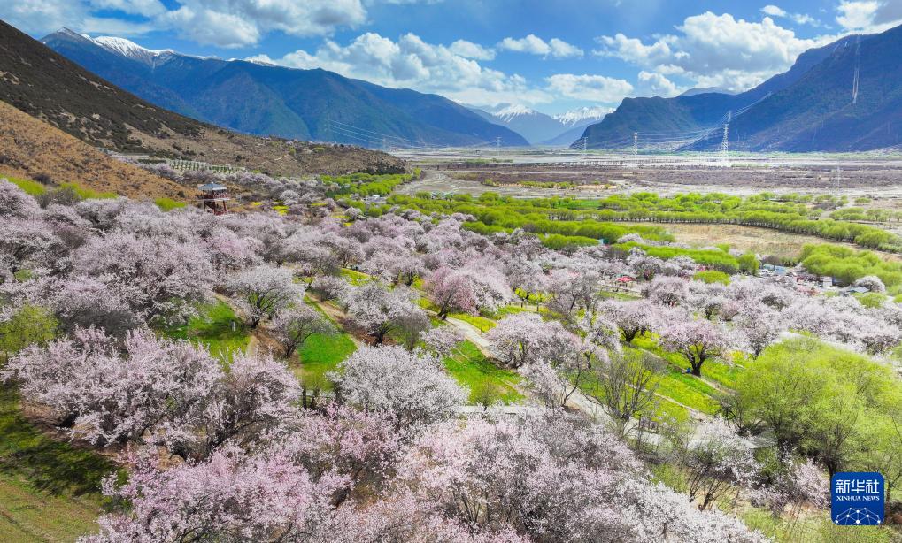 這是在西藏林芝市巴宜區(qū)拍攝的桃花(2024年4月1日攝,無人機(jī)照片)。新華社記者 丁增尼達(dá) 攝