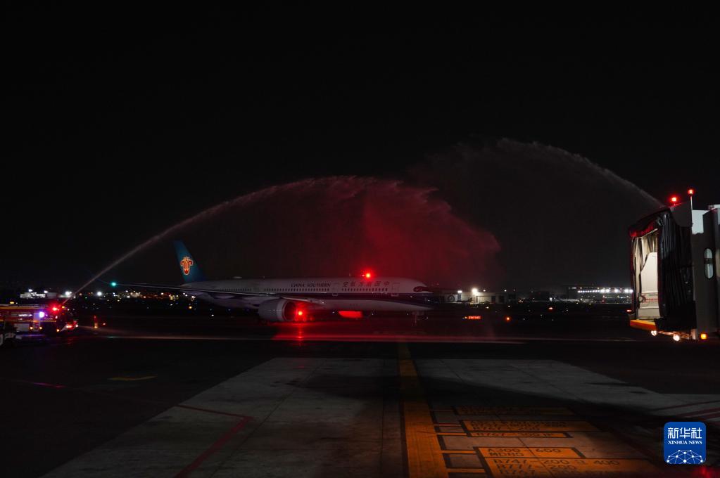 5月11日晚,首趟由中國南方航空集團(tuán)有限公司執(zhí)飛的深圳—墨西哥城直飛航班降落在墨首都墨西哥城貝尼托·華雷斯國際機(jī)場。