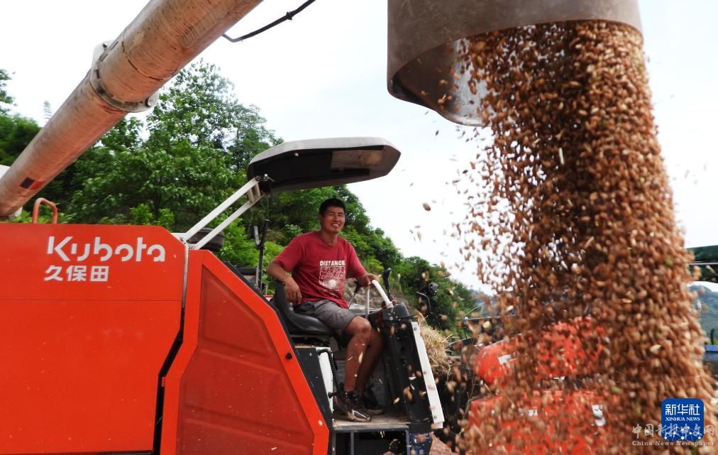 5月19日,在四川省達州市高新區(qū)金埡鎮(zhèn)龍坪村,農(nóng)民將剛收割的小麥裝車。