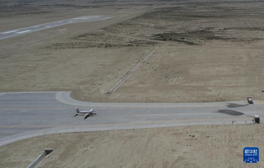 6月4日,在位于巴基斯坦瓜達爾的瓜達爾新國際機場,進行校飛試驗的飛機成功著陸(無人機照片)。