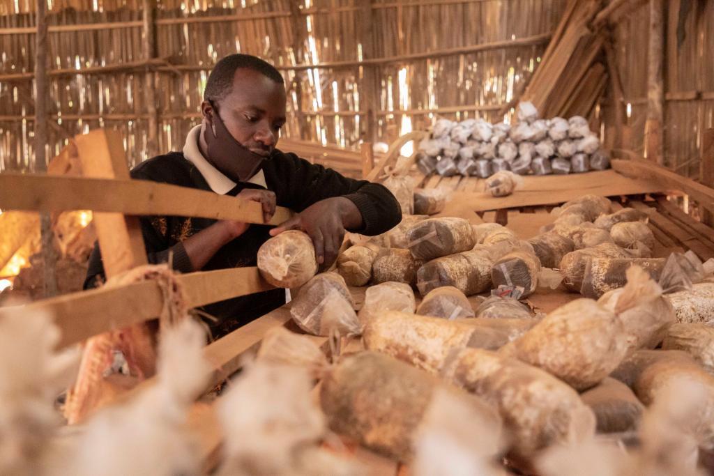在盧旺達首都基加利,42歲的萊昂尼達斯·穆希米伊馬納經(jīng)營著當?shù)匾?guī)模最大的食用菌培育工坊。他曾前往中國參加菌草技術(shù)培訓,回國后成立了這家工坊。
