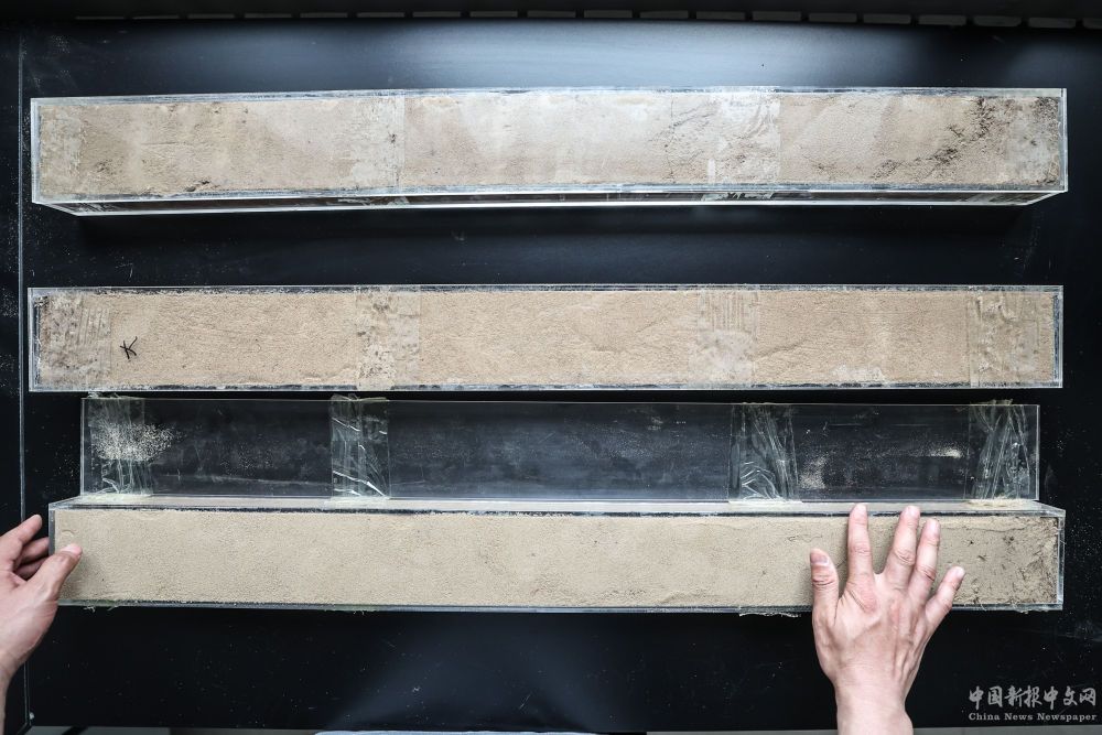 “草根博士”呂林有在遼寧省農(nóng)業(yè)科學(xué)院沙地治理與利用研究所章古臺(tái)基地實(shí)驗(yàn)室整理提取的沙地土壤剖面樣本(2024年5月30日攝)。新華社記者 潘昱龍 攝