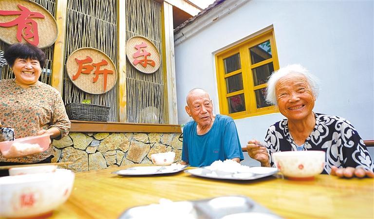 7月12日,老人在“好日子”示范區(qū)馬莊村幸福食堂用餐。全村85歲以上老人可以享受免費(fèi)助餐服務(wù),以及理發(fā)、洗衣、洗浴、體檢等6項(xiàng)助老服務(wù)。